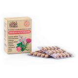 Состав: микрокристаллическая целлюлоза, экстракты (концентрированные густые вытяжки) корня красной щетки (радиолы четырехчленной), боровой матки (ортилии однобокой), таволги, корня лопуха, тысячелистника, корня девясила, зверобоя, пустырника, мяты.